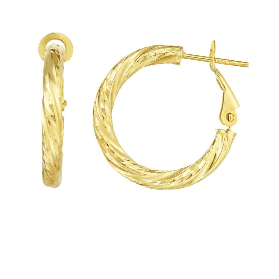 Buy 14K Gold Plated Brass Wholesale 3x15mm Diamond Cut Twist Omega Back Hoop Earring
