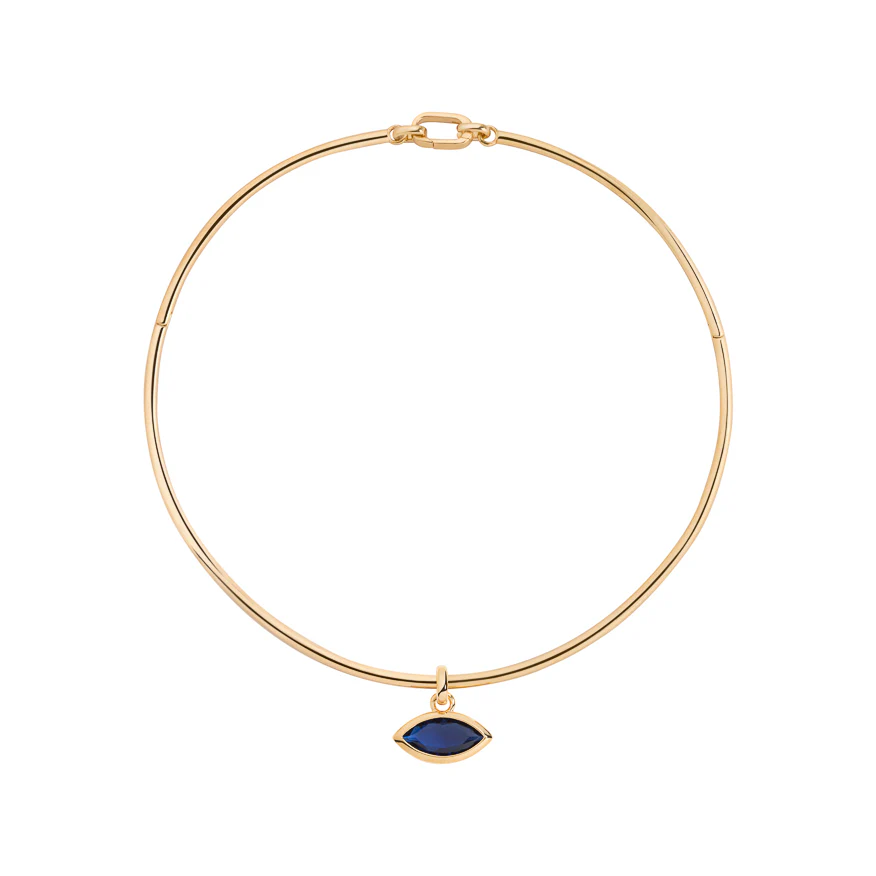 14KT Gold Plate 3MM Wire Choker featuring a Marquise Cut Sapphire Pendant