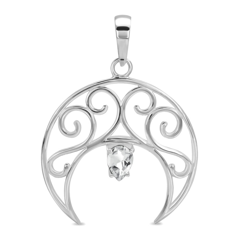 Buy Silver Plated Brass Wholesale Crystal Crescent Moon Pendant